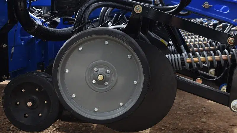 Doug Warrener, New Holland’s Canadian marketing manager, told farmnewsNOW double shoot disc drill technology is gaining more attention as farmers look to get their crops access to nutrients in the soil quicker to maximize emergence.