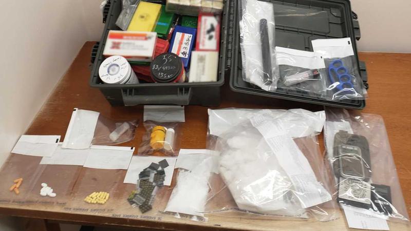 Officers approached the vehicle, which had four occupants in it, and observed a weapon in plain sight. The vehicle was subsequently searched. Officer located and seized 1.16 kg of suspected methamphetamine, 37.9 grams of suspected gamma-hydroxybutyrate (GHB), drug trafficking paraphernalia, as well as ammunition, brass knuckles and pepper spray.