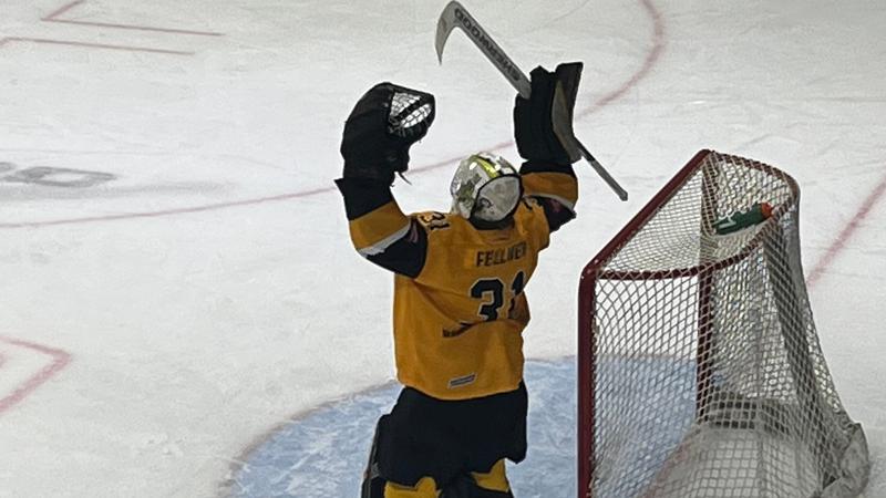 Fellner, 19, made 35 saves in the win that pushed the Hawks’ record back to a .500 winning percentage at 17-17-1-1 on the year. Fellner said finally getting his first shutout in his 46th career game is special.