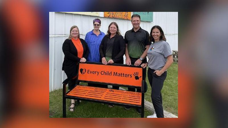 Every Child Matters orange bench set up in Nipawin