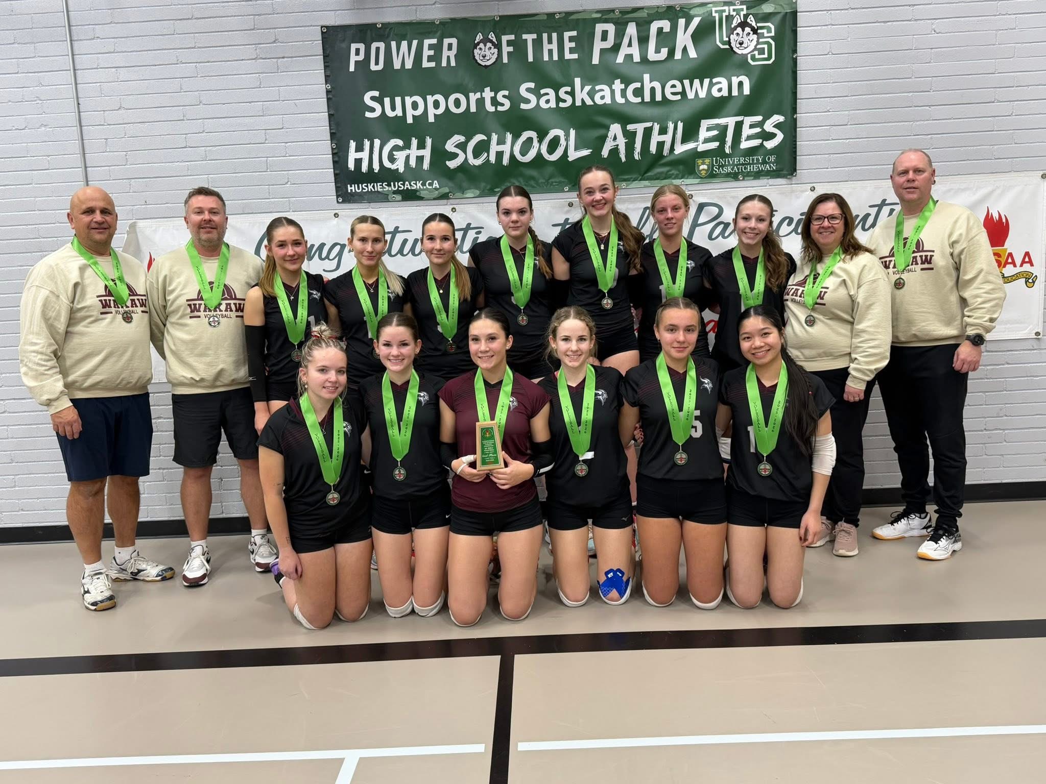 The Lanigan Lazers won gold at this weekend's high school volleyball provincials. (Horizon School Division/Facebook)