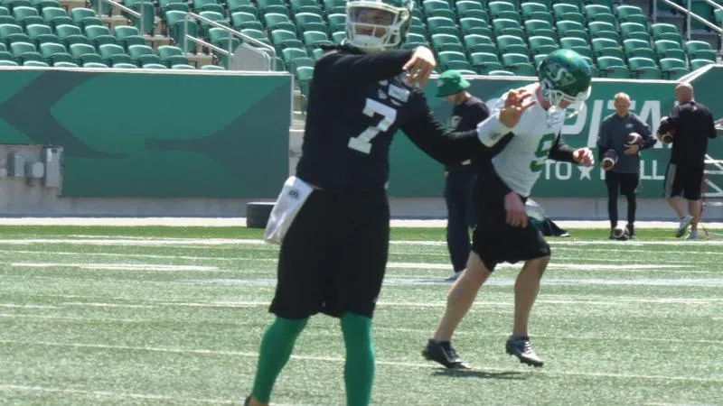 Jun 19, 2019 Cody Fajardo throwing a ball in practice on June 18, 2019. (Britton Gray/980 CJME)