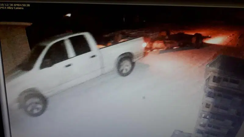 Dec 31, 2019 Police are looking for suspects driving a white truck and flat bed trailer. (submitted photo/RCMP)