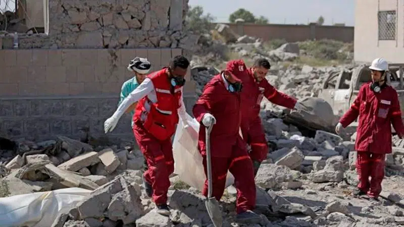 Saudi-led airstrikes kill at least 60 at rebel-run prison