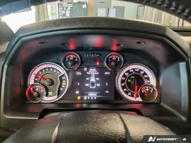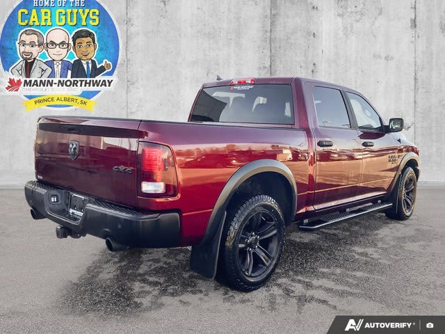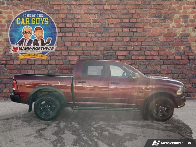 Command attention with this 2022 Ram 1500 Classic Warlock, presented in striking Red Pearl with a Black interior. This formidable Crew Cab pickup boasts 175250 kilometers, powered by the mighty 5.7L Hemi Variable Valve Timing V8 engine with FuelSaver Multi-Displacement System for robust performance and impressive efficiency. An 8-speed TorqueFlite automatic transmission ensures every drive is powerful yet refined.The Warlock Quick Order package defines its aggressive aesthetic, featuring black exterior badging, powder-coated bumpers, a prominent black grille with Ram lettering, and sport tail lamps. Its raised ride height further enhances its imposing presence, distinguishing it on any road. Standard practical features include a rear view camera for easy maneuvering and cruise control for relaxed long-distance journeys.Inside, the cabin blends comfort with advanced connectivity. This Ram 1500 Classic Warlock’s Luxury Group offers premium amenities like a leather-wrapped steering wheel, power folding heated exterior mirrors with integrated turn signals, and a customizable 7-inch in-cluster display. Practical enhancements such as LED bed lighting, a universal garage door opener, and 2nd row in-floor storage bins add convenience. For comfort and peace of mind, the Remote Start & Security Alarm Group allows you to remotely start your truck and enhances its security. Key safety features including traction control and stability control contribute to a secure driving experience.Don’t miss the opportunity to own this impressive 2022 Ram 1500 Classic Warlock. Contact us today to schedule your test drive and experience its unparalleled power and unique style firsthand!Mann-Northway Auto500 Marquis Road, Prince Albert SK S6V 8B3