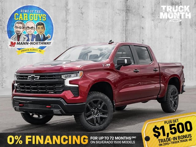 This Chevrolet Silverado 1500 boasts a sturdy engine powering this Automatic transmission.*This Chevrolet Silverado 1500 Is Competitively Priced with These Options *LT TRAIL BOSS PREMIUM PACKAGE includes (PCM) Convenience Package II, (PQB) Safety Package, (CXH) Leather Package, (WPQ) Protection Package and (QT6) Power up/down tailgate , TRANSMISSION, 10-SPEED AUTOMATIC WITH ELECTRONIC TRANSMISSION RANGE SELECTOR (ETRS), electronically controlled with overdrive, tow-haul mode and steering column paddle shifters. Includes Cruise Grade Braking and Powertrain Grade Braking, TIRES, LT265/60R20 BLACKWALL GOODYEAR WRANGLER TERRITORY MT, TAILGATE, MULTI-FLEX with six functional load/access features, NOTE: Auto release can be disabled if ball hitch is installed. See Owner’s manual for details, SUNROOF, POWER on Crew Cab models, SEATS, FRONT BUCKET with centre console (Includes (EPH) Electronic Transmission Range Selector (console mounted)., REAR AXLE, 3.23 RATIO, RADIANT RED TINTCOAT, LT TRAIL BOSS PREFERRED EQUIPMENT GROUP includes standard equipment, LPO, OFF-ROAD ASSIST STEPS (dealer-installed).* Stop By Today *A short visit to Mann-Northway Auto Source located at 500 Marquis Rd, Prince Albert, SK S6V 8B3 can get you a trustworthy Silverado 1500 today!Welcome to Mann Northway GM, Home of the Car Guys. We are a high volume dealership located in the heart of Saskatchewan who emphasizes customer service and satisfaction above all else. Being one of the Largest GM dealers in Western Canada, our inventory allotment and selection is second to none. If we don’t have it, chances are we have one coming or can get you your dream vehicle. We also believe in taking care of our community and have raised over $2,000,000 in the last few years for multiple local charities. When you are in the market for a new vehicle, come see the Car Guys/Gals at Mann Northway and see what a new vehicle buying experience should be like!