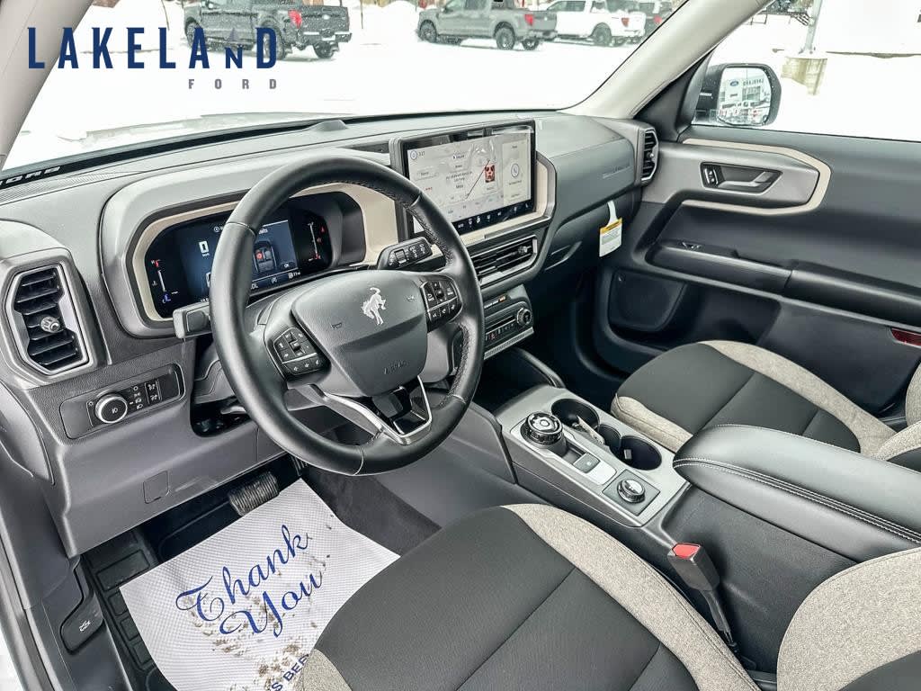 The 2026 Ford Bronco Sport Big Bend 4×4 in White is a robust SUV designed to handle both urban streets and off-road adventures with ease. This new SUV combines the versatile 4×4 drivetrain with an effortless automatic transmission, making it a perfect choice for those who crave power with convenience.The exterior of the Bronco Sport Big Bend offers a commanding presence with its bold lines and alloy wheels that enhance its rugged appeal. Inside, it boasts a comfortable and feature-rich cabin with air conditioning, power seats, and windows, ensuring a pleasant journey no matter the distance. The heated front seats and heated mirrors add an extra layer of comfort, especially in colder climates.Technology in the Bronco Sport is focused on connectivity and safety. Stay in touch with the built-in Bluetooth connection and smart device integration, while a Wi-Fi hotspot keeps everyone connected on the go. Safety features include a backup camera, brake assist, lane assist, and adaptive cruise control, offering peace of mind with every drive.Perfect for outdoor enthusiasts and families alike, this SUV offers practicality and innovation for every adventure. Contact our dealership today to learn more about how you can make the Ford Bronco Sport Big Bend 4×4 your new ride.