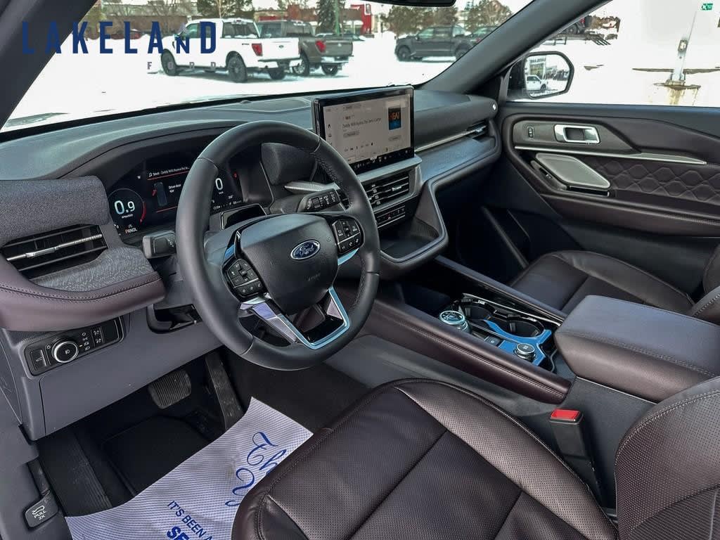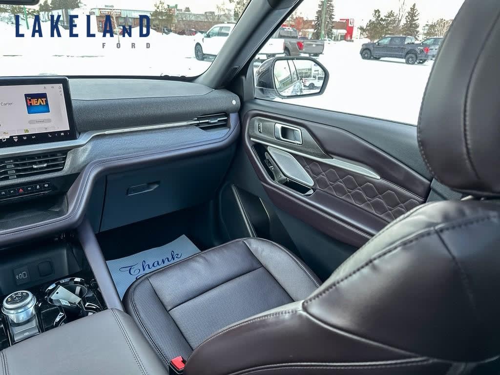 Meet the 2026 Ford Explorer Platinum 4WD in a stunning White finish. Built for those who crave adventure and luxury together, this SUV knows how to handle the road with its robust 4×4 drivetrain and smooth automatic transmission.Admire the sleek design while the interior invites you into a world of sophistication with its leather seats and leather-trimmed door panels. Stay comfortable year-round with heated and cooled front seats, and a heated steering wheel to ensure optimal comfort during those cold winter drives.The Ford Explorer Platinum comes loaded with cutting-edge technology to keep you connected, including a navigation system, Wi-Fi hotspot, and smart device integration. For peace of mind, the SUV includes a comprehensive suite of safety features such as a backup camera, lane assist, parking sensors, and adaptive cruise control.This is the perfect vehicle for the modern family or adventurer who doesnt want to compromise on luxury or performance. Contact us today to learn more about the 2026 Ford Explorer Platinum and make it yours.