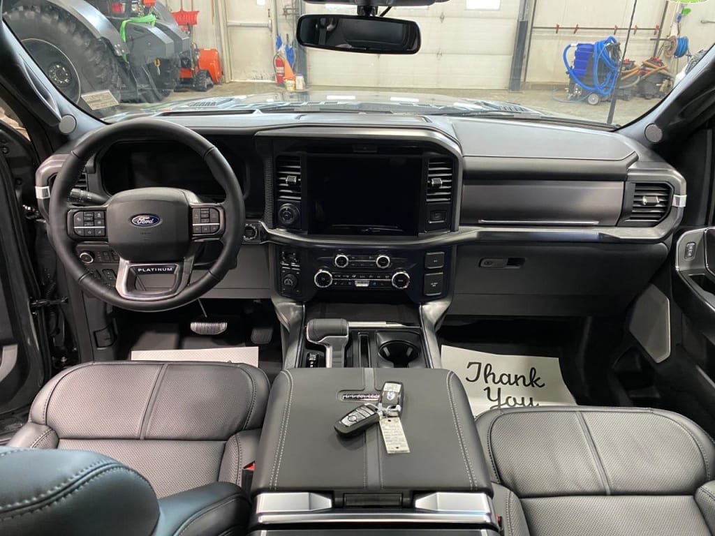 The 2026 Ford F-150 Platinum in a stunning gray hue offers a sturdy 4×4 drivetrain, perfect for handling various terrains and road conditions. This new truck embodies power and style, ensuring you make a bold statement on the road.The exterior impresses with its commanding presence, while the allure continues inside with a sophisticated black interior adorned with leather seats. The trucks design is complemented by features like alloy wheels and sleek running boards that enhance its rugged appeal. Step inside to experience luxury with a heated steering wheel, heated and cooled seats, and a leather steering wheel to elevate your driving experience.Advanced technology lies at your fingertips thanks to the SYNC 4 system complete with Enhanced Voice Recognition, a 12-inch center display, and seamless smart device integration including Apple CarPlay and Android Auto compatibility. Safety is prioritized with features such as lane assist, adaptive cruise control, and parking sensors, ensuring peace of mind with every drive.Ideal for those who demand performance without compromising on comfort and technology, the 2026 Ford F-150 Platinum is waiting for you. Dont miss the chance to elevate your driving experience; contact us today to make this remarkable truck yours.