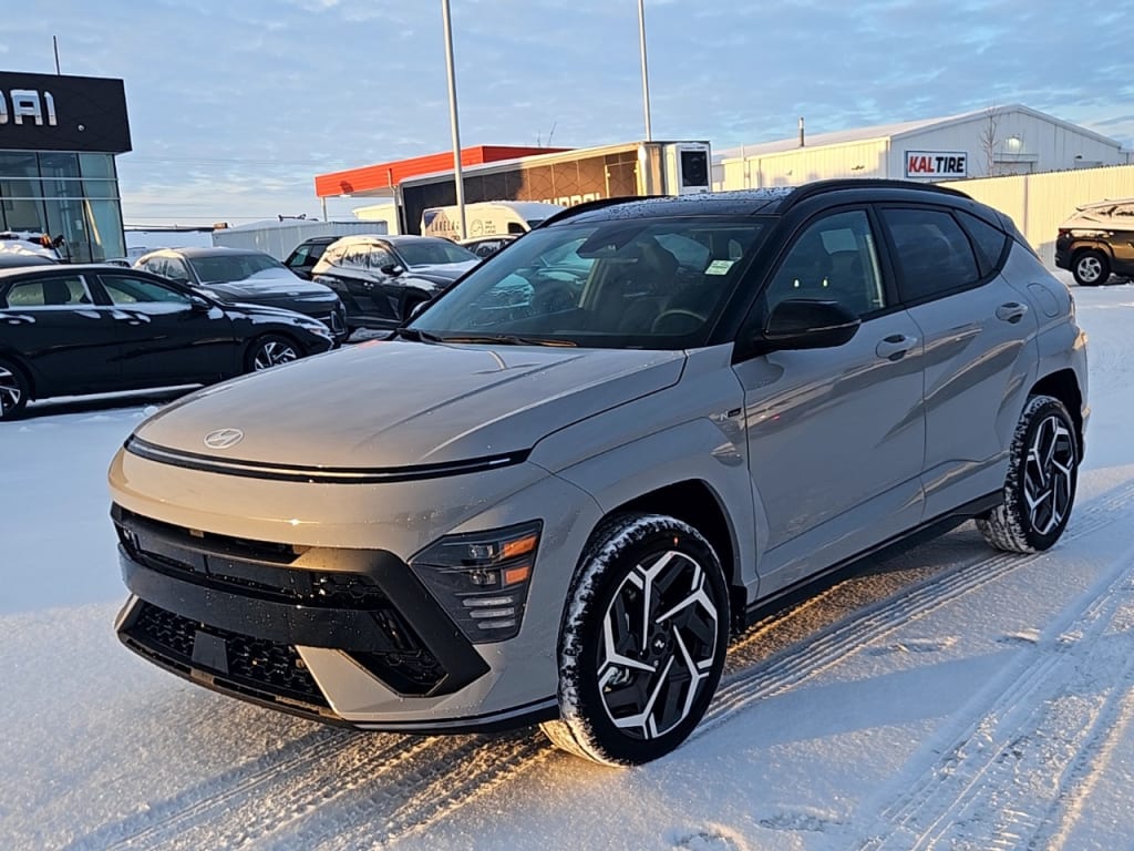 The 2026 Hyundai Kona N Line AWD with Two-Tone Roof in Gray is a stunning SUV designed for those who demand performance and style. With its AWD drive train, this Hyundai promises a smooth and responsive drive, making it perfect for any road condition.The exterior design of the Kona N Line exudes sophistication with its striking two-tone roof and alloy wheels, complemented by a modern color palette. Step inside to find a luxurious Black interior featuring heated seats and a leather-wrapped steering wheel, providing both comfort and elegance.Tech-savvy drivers will appreciate the smart device integration and the seamless connectivity offered by the Bluetooth connection and satellite radio. Stay safe and confident on the road with advanced safety features such as adaptive cruise control, lane assist, and a backup camera. Enjoy convenience at your fingertips with features like remote start and keyless entry.If youre an adventurous driver seeking a blend of performance, comfort, and cutting-edge technology, the Hyundai Kona N Line is the perfect choice. Contact us today to learn more about this new SUV and how it can elevate your driving experience.