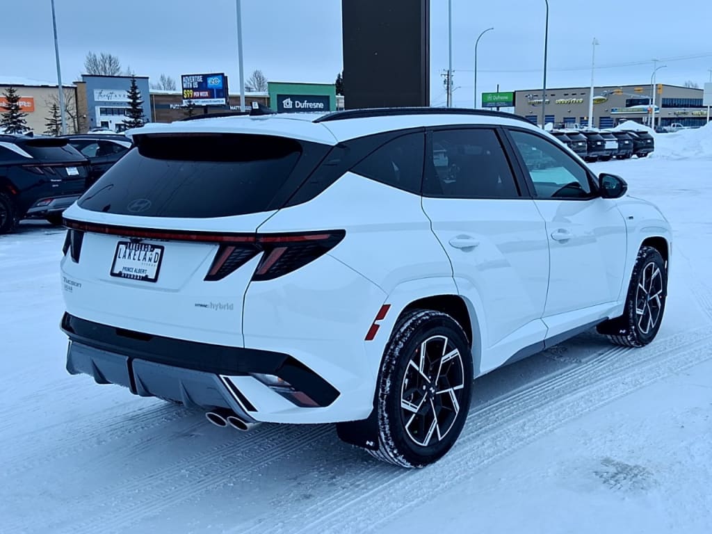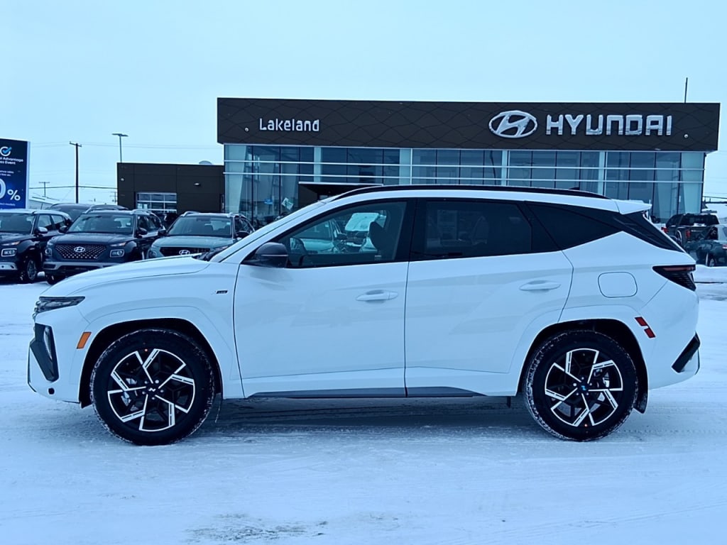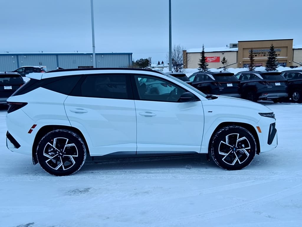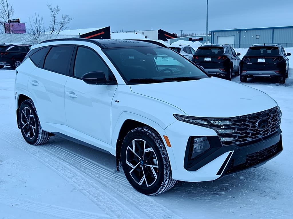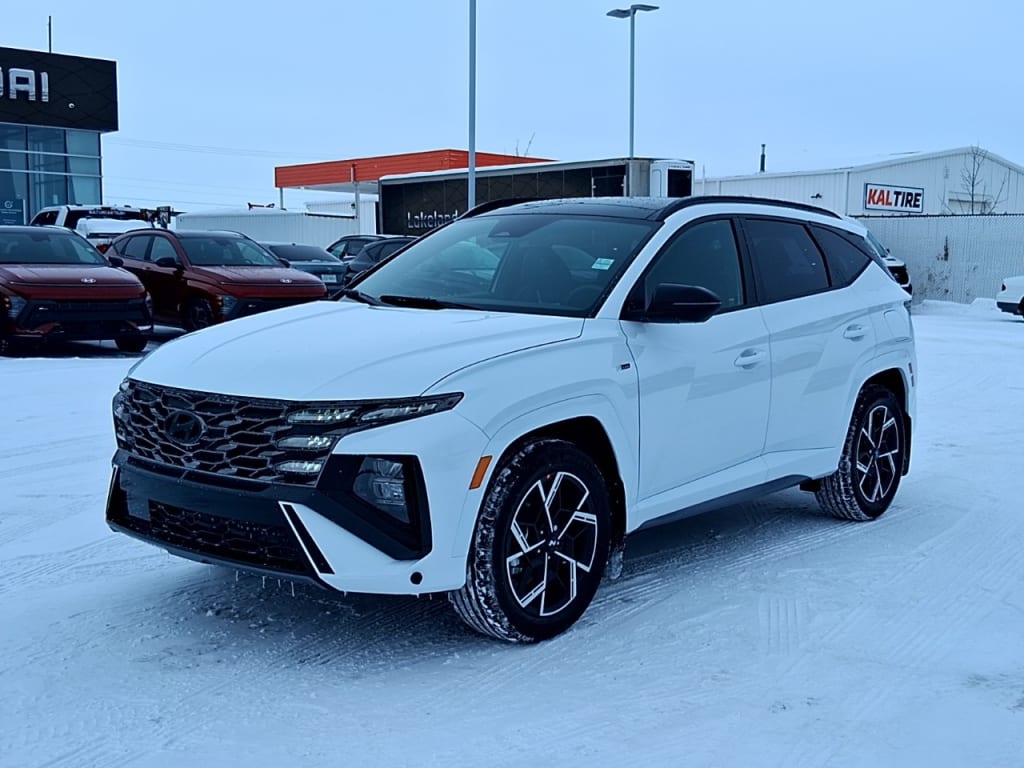 NewThe 2026 Hyundai Tucson Hybrid N-Line AWD in a pristine white exterior and sleek all-wheel-drive system is ready to elevate your driving experience. Its robust handling delivers a dynamic and engaging ride, perfect for urban adventures or those country road escapes.The striking white exterior is complemented by stylish alloy wheels, embodying progressive design and elegance. Inside, the Tucson Hybrid features a sophisticated black interior with leather seats, providing ultimate comfort and a luxurious ambiance. With a generous sunroof/moonroof, the cabin is flooded with natural light, enhancing your driving experience. The smart device integration, bluetooth connection, and satellite radio promise exceptional connectivity and entertainment options for every journey.Equipped with cutting-edge technology, this SUV boasts a comprehensive suite of safety features including lane assist, a backup camera, and brake assist, ensuring peace of mind on every drive. Heated mirrors and a heated steering wheel offer extra comfort in colder climates, while adaptive cruise control aids in effortless highway driving.This Hyundai Tucson Hybrid is the perfect choice for families and tech enthusiasts eager for a vehicle that combines eco-friendly efficiency with exceptional style and advanced technology. Reach out to our dealership today to find out how this innovative SUV can be yours.