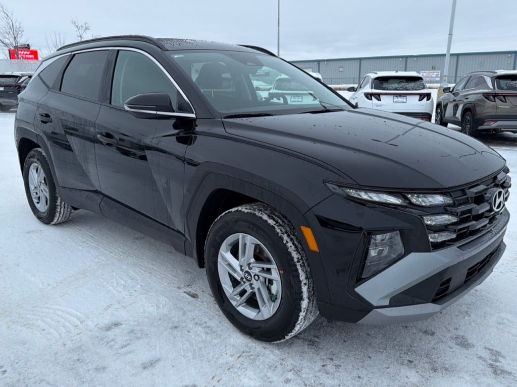 Introducing the 2026 Hyundai Tucson Preferred AWD in a striking black finish, perfect for navigating Canadian roads with its robust all-wheel drive. This SUV promises a confident and controlled drive.The exterior boasts alloy wheels and heated mirrors, seamlessly blending style with functionality. Inside, the black interior provides a sophisticated setting with heated front seats and a leather steering wheel, ensuring comfort even in the harshest conditions.Equipped with advanced technology, the Tucson features a backup camera, Bluetooth connectivity, and a smart device integration system. Its safety and convenience highlights include lane assist, adaptive cruise control, and remote start, making your journey safe and effortless.Ideal for families or anyone needing a reliable and stylish vehicle, this Tucson is ready to meet your needs. Contact your local dealership today to learn more about this incredible SUV.