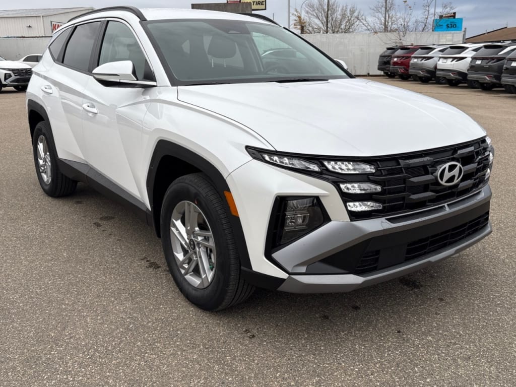 The 2026 Hyundai Tucson Preferred AWD in elegant white is an ideal choice for those seeking a powerful yet smooth driving experience, thanks to its AWD drivetrain. This capable SUV is designed to handle a variety of road conditions with confidence.On the exterior, this Tucson boasts stylish alloy wheels that enhance its modern appeal. The sophisticated black interior complements the refined exterior, providing a comfortable and inviting space for all occupants. With features like heated seats and a leather-wrapped heated steering wheel, every journey is a comfortable one.Technologically advanced, this Tucson Preferred is equipped with a user-friendly interface for smart device integration and a satellite radio for endless entertainment options. Safety is prioritized with features such as a backup camera, brake assist, lane assist, and adaptive cruise control, providing peace of mind for drivers.Ideal for families and adventurers alike, the 2026 Hyundai Tucson Preferred AWD combines functionality and style. Contact our dealership today to explore this impressive vehicle and experience all it has to offer firsthand.