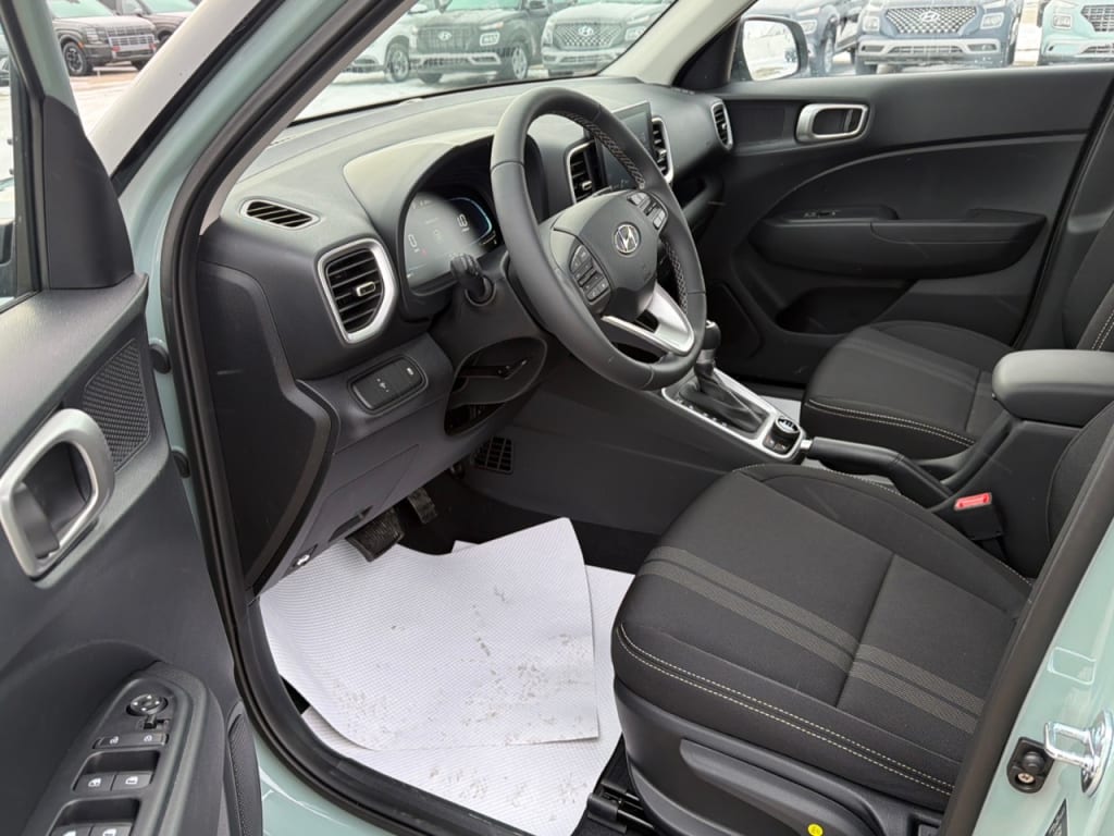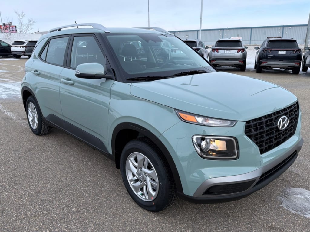 Enhance your driving experience with the sleek 2026 Hyundai Venue Preferred IVT in an eye-catching Green color. This dynamic SUV with FWD handling is perfect for Canadian roads, offering seamless maneuverability and style.The exterior boasts modern alloy wheels and practical heated mirrors, while the spacious interior in sophisticated Black provides comfort with heated front seats and a leather-wrapped, heated steering wheel. Integrated smart device features and thoughtful touches like a leather/metal-look gear shifter elevate your driving experience.Stay connected and safe with advanced technology including a backup camera, Bluetooth connectivity, and remote start. Equipped with driver assistance features like lane assist and brake assist, you can drive confidently, knowing safety is a priority.This vehicle is ideal for both urban explorers and family-oriented drivers seeking reliability, style, and practicality. Connect with us today to learn more about the Hyundai Venue Preferred IVT and make it yours!