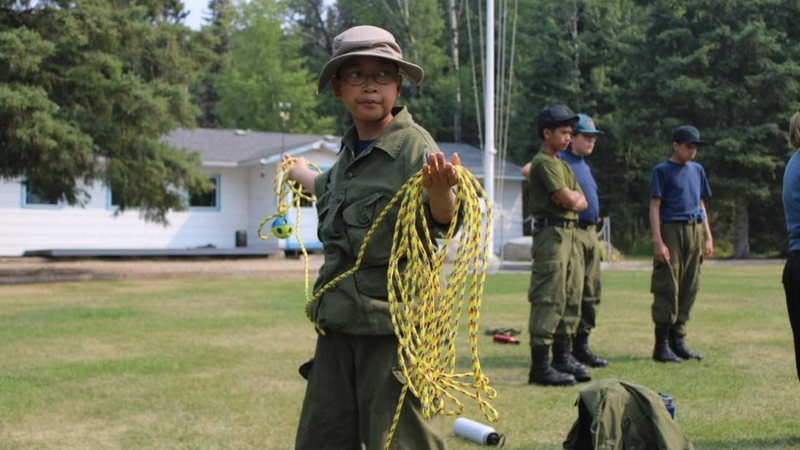 AIR CADET LEARNS ABOUT SEAMANSHIPCorporal Matthew Kartowikromo of 624 Tisdale, Royal Canadian Air Cadet Squadron, in Tisdale, Sask, heaving a line, at Camp Saskadet, near Kelvington, Sask., on August ...