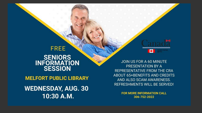 The Melfort Public Library is hosting a free seniors information session on Wednesday, August 30 at 10.30 a.m.Please see the poster for details.